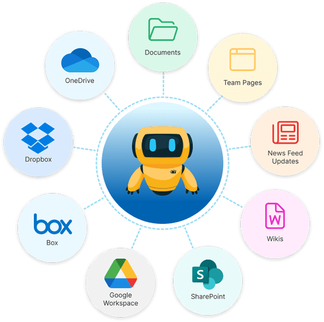 The Company Knowledge Assistant integrates seamlessly with tools like Google Workspace, SharePoint, and Box, pulling information from these platforms to provide more comprehensive responses. This feature eliminates the need to manually search through each platform, offering quick access to files, reports, and project documents. Instead of providing a list of links, the AI retrieves and presents relevant data, documents, or summaries directly in response to questions.