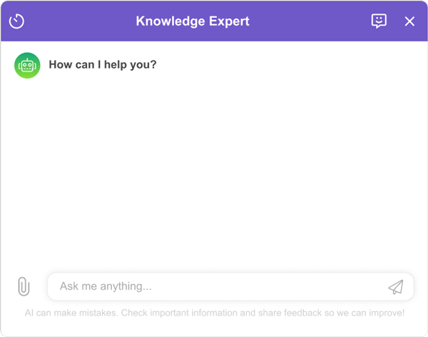 The Company Knowledge Assistant is powered by a Large Language Model (LLM), allowing it to respond conversationally and contextually. Employees can ask questions using natural language, just like speaking to a colleague, and the expert understands the intent behind the query. This advanced AI enables the expert to generate accurate, role-specific responses by drawing from internal knowledge bases, policies, and documents. It can also handle follow-up questions, making the search experience interactive and adaptive to ongoing conversations.