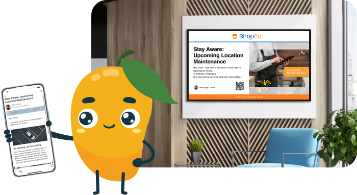 Incorporate Company-Wide Alerts, Posts, Recognitions, and more from your MangoApps Intranet, efficiently migrating existing content that updates in real-time into your Digital Signage provider’s platform. MangoApps’ Digital Signage automatically displays posts published in your intranet, eliminating redundant content creation efforts and mixing domain content into the media you’re already displaying.